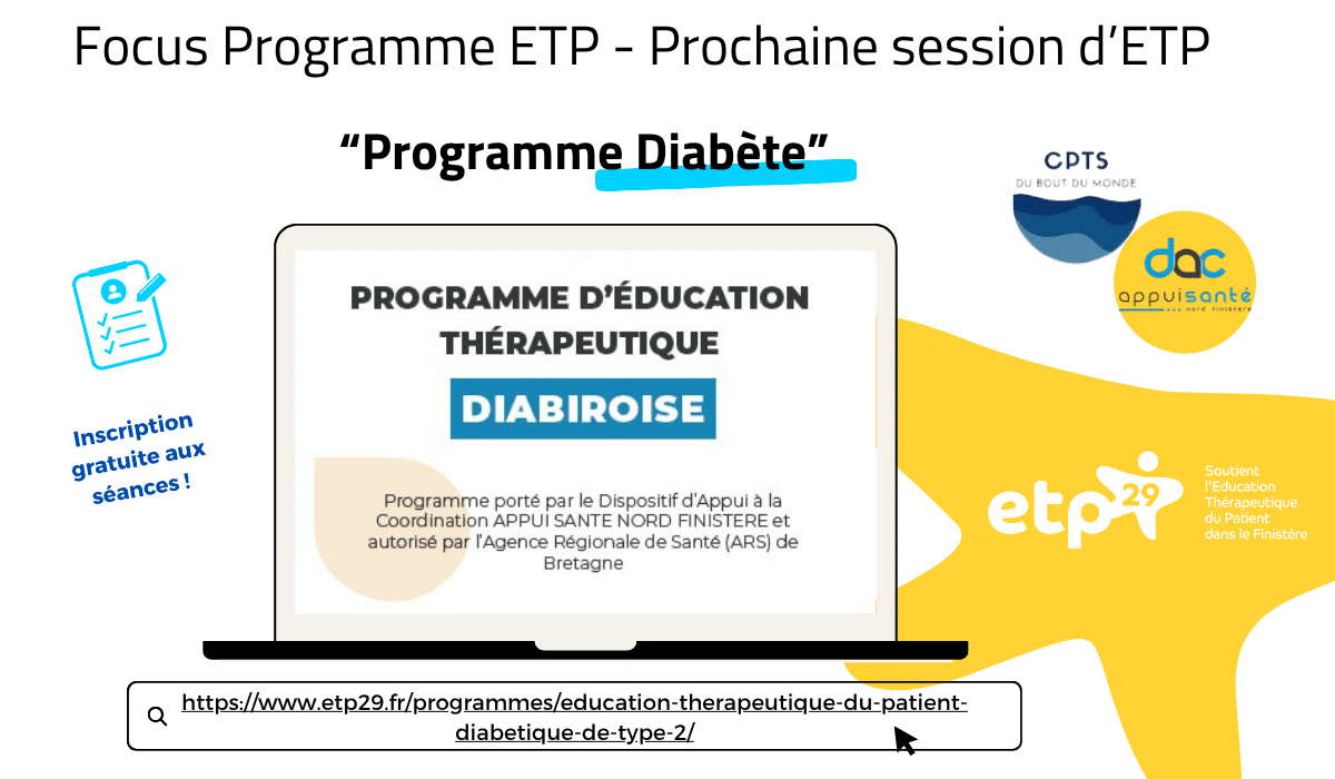 📢 Ouverture des inscriptions pour le prochain cycle du programme diabète déployé par la CPTS du Bout du Monde à Crozon et porté par le DAC Appui Santé Nord Finistère.
